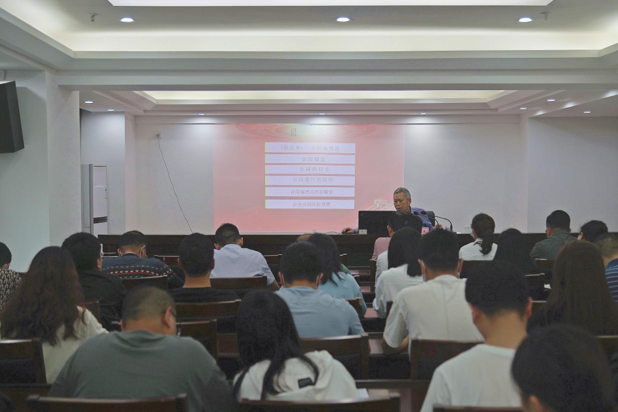 為做好企業(yè)普法宣傳工作,廣泛開展法律進(jìn)企業(yè)法制宣傳教育活動(dòng),培養(yǎng)員工學(xué)法、懂法、用法法治思維,2022年5月25日下午,巴中發(fā)展控股集團(tuán)舉辦了法律培訓(xùn),特邀請巴中市律師協(xié)會會長、四川砝鼎律師事務(wù)所主任朱曉光作專題培訓(xùn)。集團(tuán)總部員工,下屬企業(yè)風(fēng)控負(fù)責(zé)人、法務(wù)、業(yè)務(wù)工作人員共計(jì)50余人參加本次培訓(xùn)。培訓(xùn)會議指出,現(xiàn)今契約文化的重要性不言而喻,合同是保障企業(yè)權(quán)利的命脈,要推動(dòng)企業(yè)法律工作向管理型轉(zhuǎn)變,由事后救濟(jì)型向事前防范、事中控制型轉(zhuǎn)變,努力做好風(fēng)險(xiǎn)防控。