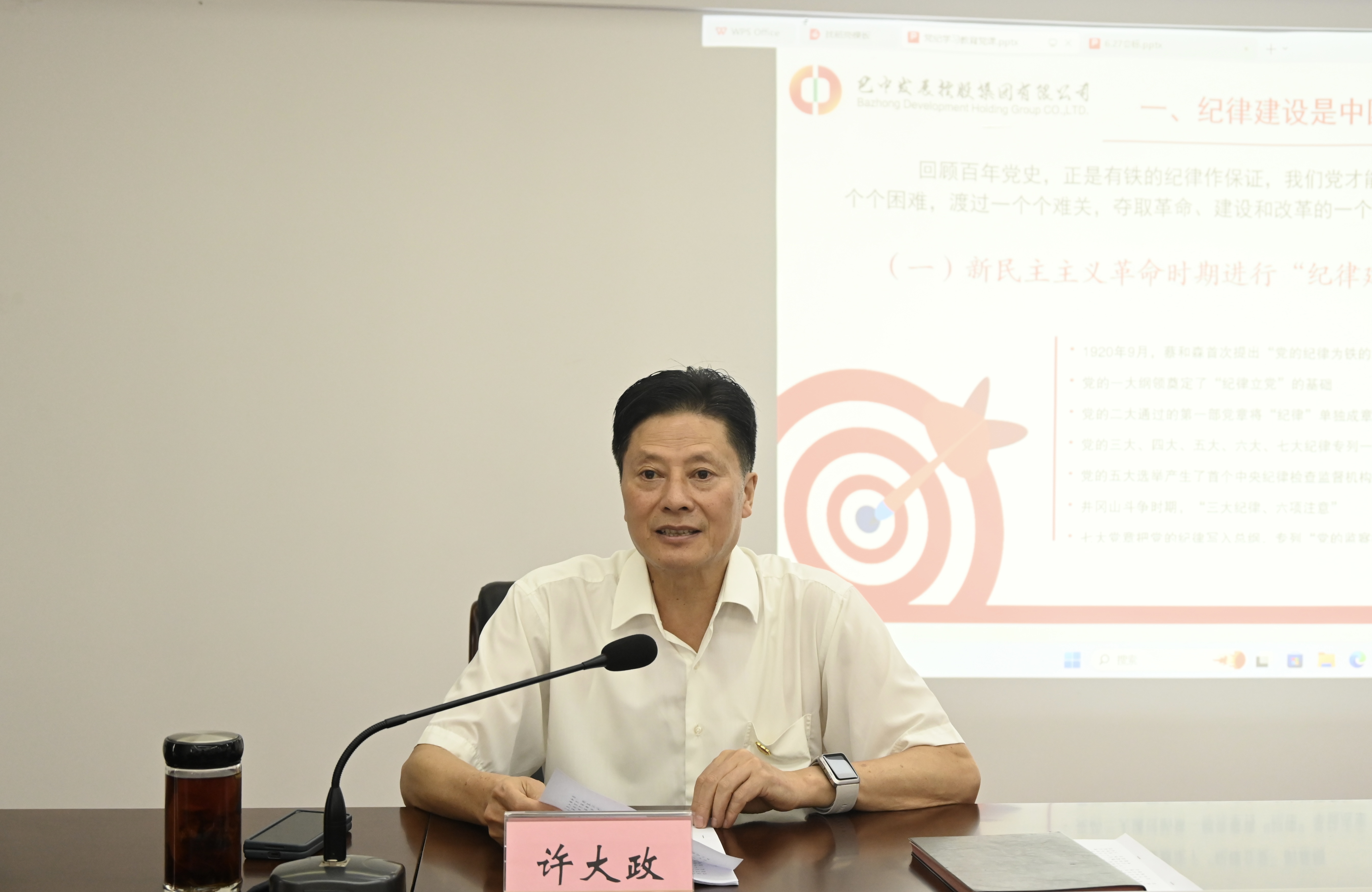 活動當(dāng)天,巴中發(fā)展控股集團(tuán)有限公司黨委書記、董事長許大政以“學(xué)紀(jì)知紀(jì)明紀(jì)守紀(jì)踐行忠誠干凈擔(dān)當(dāng)”為主題,圍繞紀(jì)律建設(shè)是中國共產(chǎn)黨克敵制勝的重要法寶、充分認(rèn)清黨員干部違紀(jì)違法的嚴(yán)重危害、當(dāng)前黨員干部在遵規(guī)守紀(jì)方面存在的問題、以實際行動踐行忠誠干凈擔(dān)當(dāng)?shù)确矫?,生動講授了一堂黨紀(jì)學(xué)習(xí)教育專題黨課,教育引導(dǎo)全體黨員銘記黨的奮斗歷史、傳承黨的紅色基因、弘揚(yáng)偉大建黨精神,真正將紀(jì)律銘記于心,使其內(nèi)化為工作生活中自覺遵循的準(zhǔn)則。