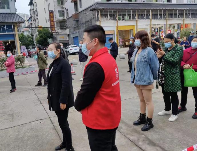 在恩陽(yáng)區(qū)登科街道核酸檢測(cè)點(diǎn),身穿紅馬甲的志愿者們?cè)诂F(xiàn)場(chǎng)維護(hù)秩序、協(xié)助登記、引導(dǎo)掃碼,耐心細(xì)致地幫助服務(wù)群眾。在社區(qū)干部、醫(yī)務(wù)工作者和志愿者的默契配合下,安全、高效、有序完成工作任務(wù)。
