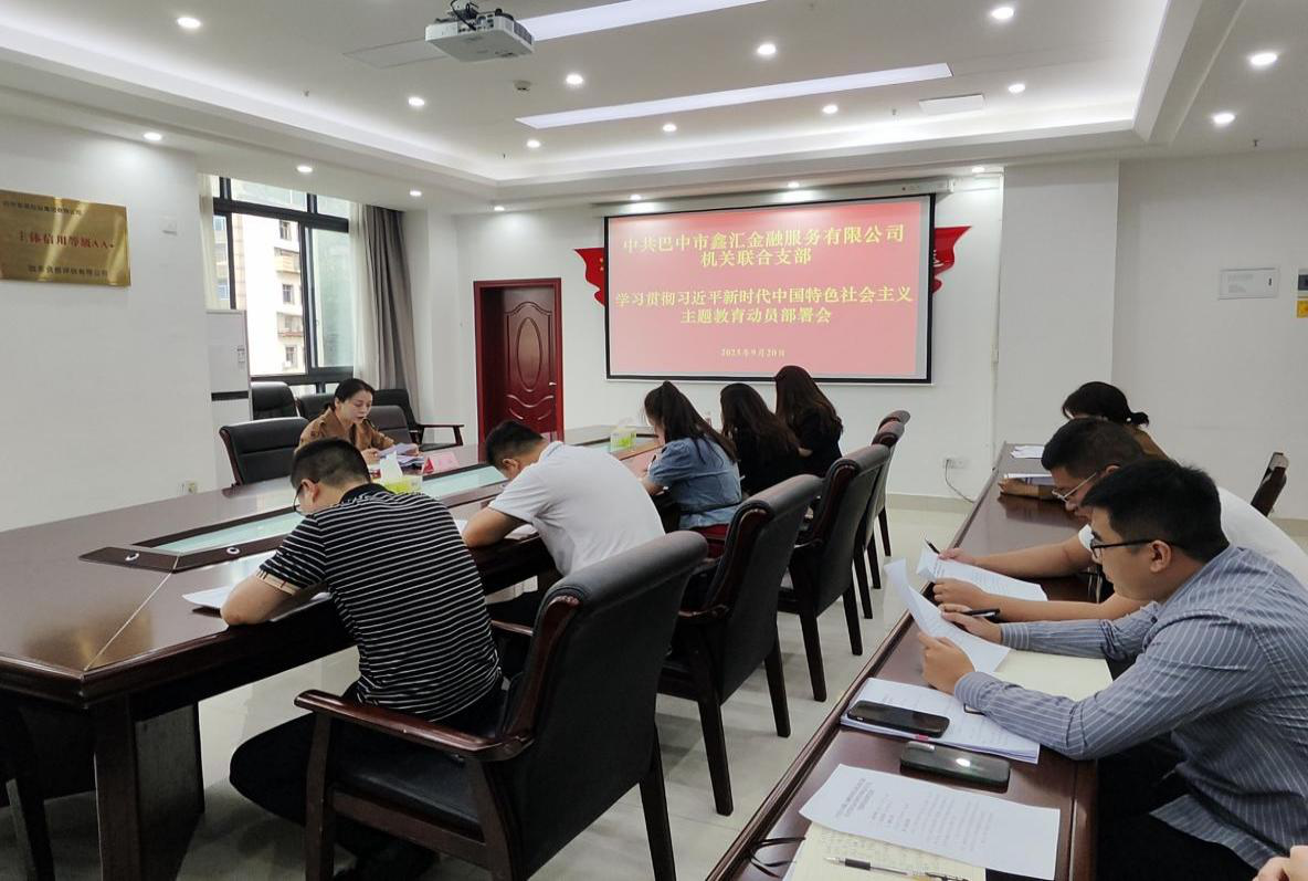 2023年9月20日下午,中共巴中市鑫匯金融服務(wù)有限公司機關(guān)聯(lián)合支部召開學(xué)習(xí)貫徹習(xí)近平新時代中共特色社會主義主題教育動員部署會,會議由黨總支委員、副總經(jīng)理、工會主席、機關(guān)聯(lián)合支部書記茍琳主持,機關(guān)聯(lián)合支部全體黨員參加。